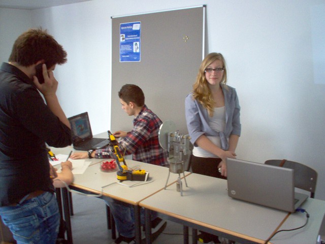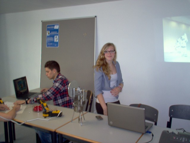 O nosso grupo apresentou o motor stirling, dois braços mecânicos (um deles distribuia rebuçados automaticamente e o outro era controlado manualmente), e ainda um video sobre as várias aplicações da robótica.